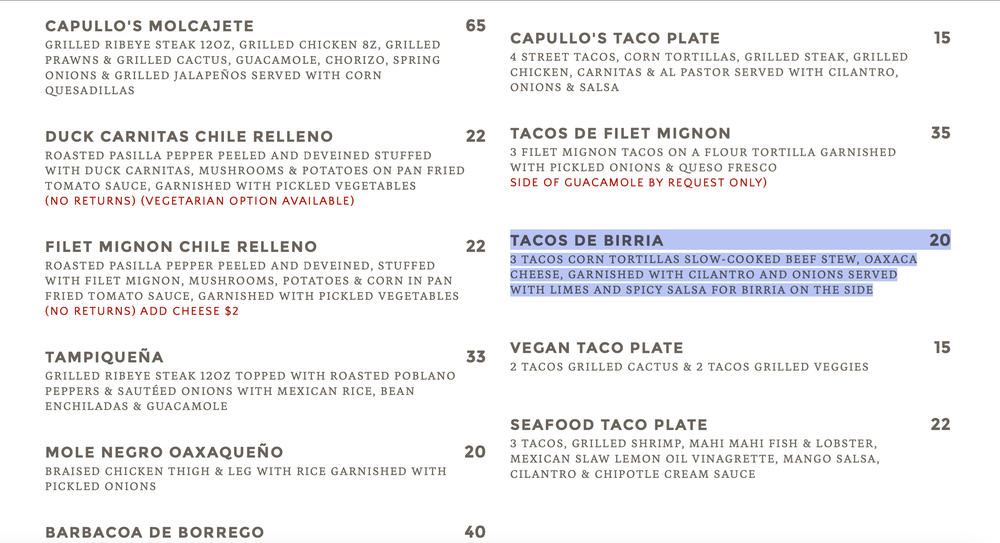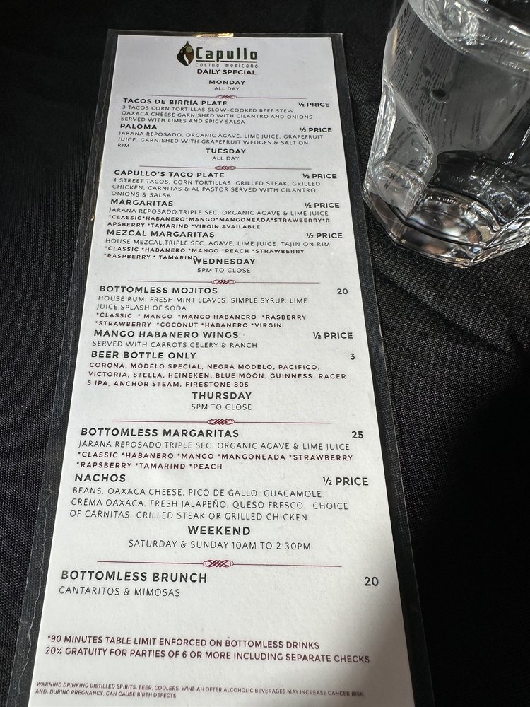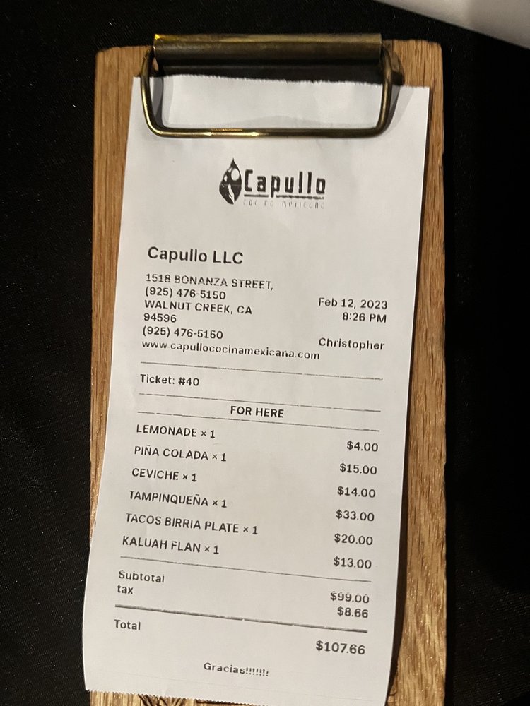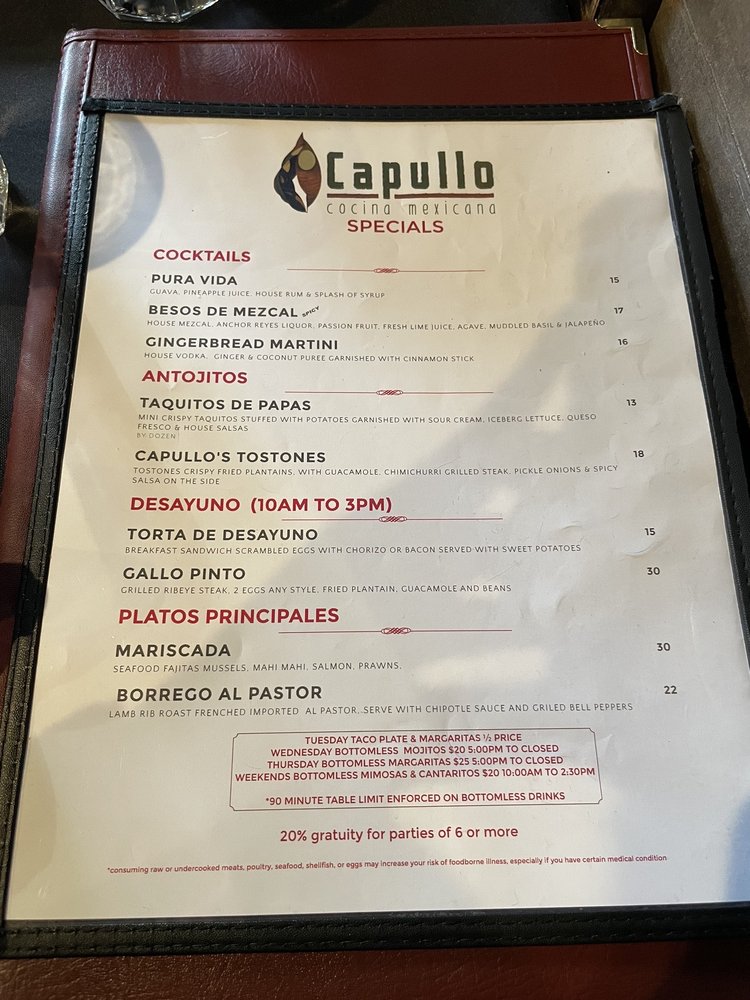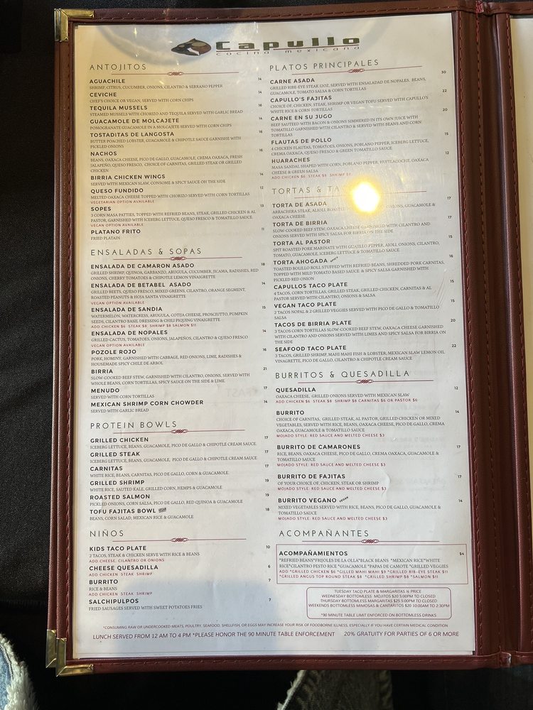 Capullo Cocina Mexicana in Walnut Creek offers a casual and trendy dining experience with a focus on Mexican cuisine. With a diverse menu ranging from mussels to nachos, there's something for everyone. The standout dishes include the flavorful Street Corn, the juicy Barbacoa de Borrego, and the crispy Chicken Tamalita. The restaurant's attentive staff, excellent service, and vibrant ambiance make for a pleasant dining experience. Customers rave about the bottomless cantarito drink on weekends and the delicious mango margarita. Capullo Cocina Mexicana is a favorite spot for those looking for authentic Mexican dishes made with fresh ingredients. Don't miss out on the opportunity to try their mouth-watering offerings and enjoy a memorable dining experience.